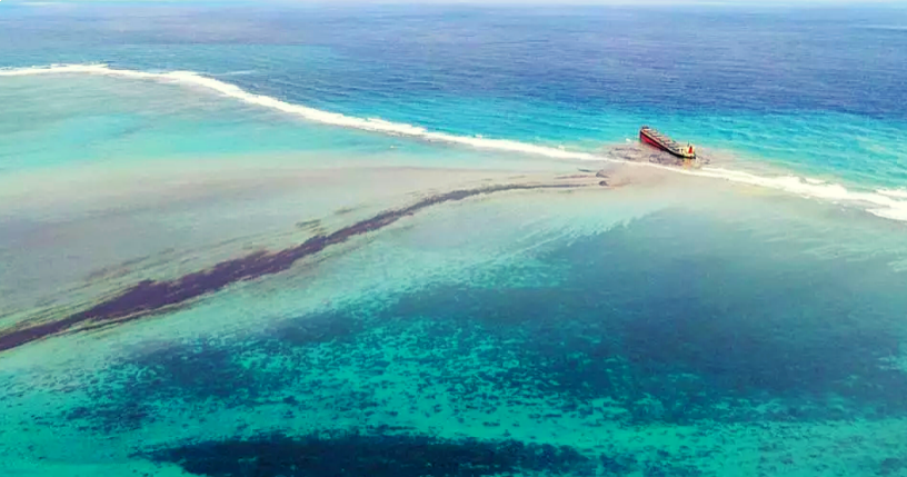 Le 25 juillet, le vraquier Japonais a échoué sur notre barrière de corail, à Pointe d'Esny. Le 06 août dernier, une fuite de pétrole s'est répandue dans le lagon, provoquant une marée noire.