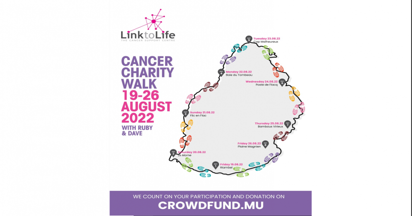 To raise funds to fight against cancer and awareness of this scourge, Link to Life and a couple of inveterate walkers, Ruby and Dave, are organizing a charity walk around Mauritius from 19 to 26 August, 2022. The Cancer Charity Walk is an 8-day challenge which aims to help cancer patients (adults) to benefit from the free transport service provided by Link to Life so that they can continue and complete their cancer treatment in hospital seamlessly.