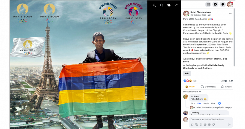 As a sport passionate, it would be the dream of a lifetime to be part of Paris 2024 as a volunteer. I might be one of the only Mauritian to be there as a volunteer and I shall take this opportunity to make our flag fly high.