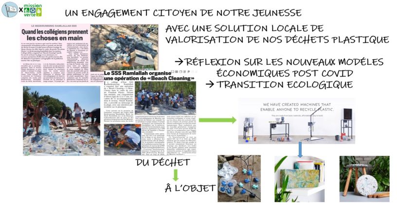 The main idea is to demonstrate that waste is also a raw material. This project aims to raise awareness both among young people and the not so young about the circular economy. Faced with the health, environmental and economic situation, it has become important to change the prism by enhancing an object which, if badly used, is harmful to nature and our health.
