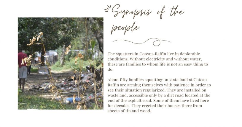 The squatters in Coteau-Raffin live in deplorable conditions. Without electricity and without water, these are families to whom life is not an easy thing to do.
